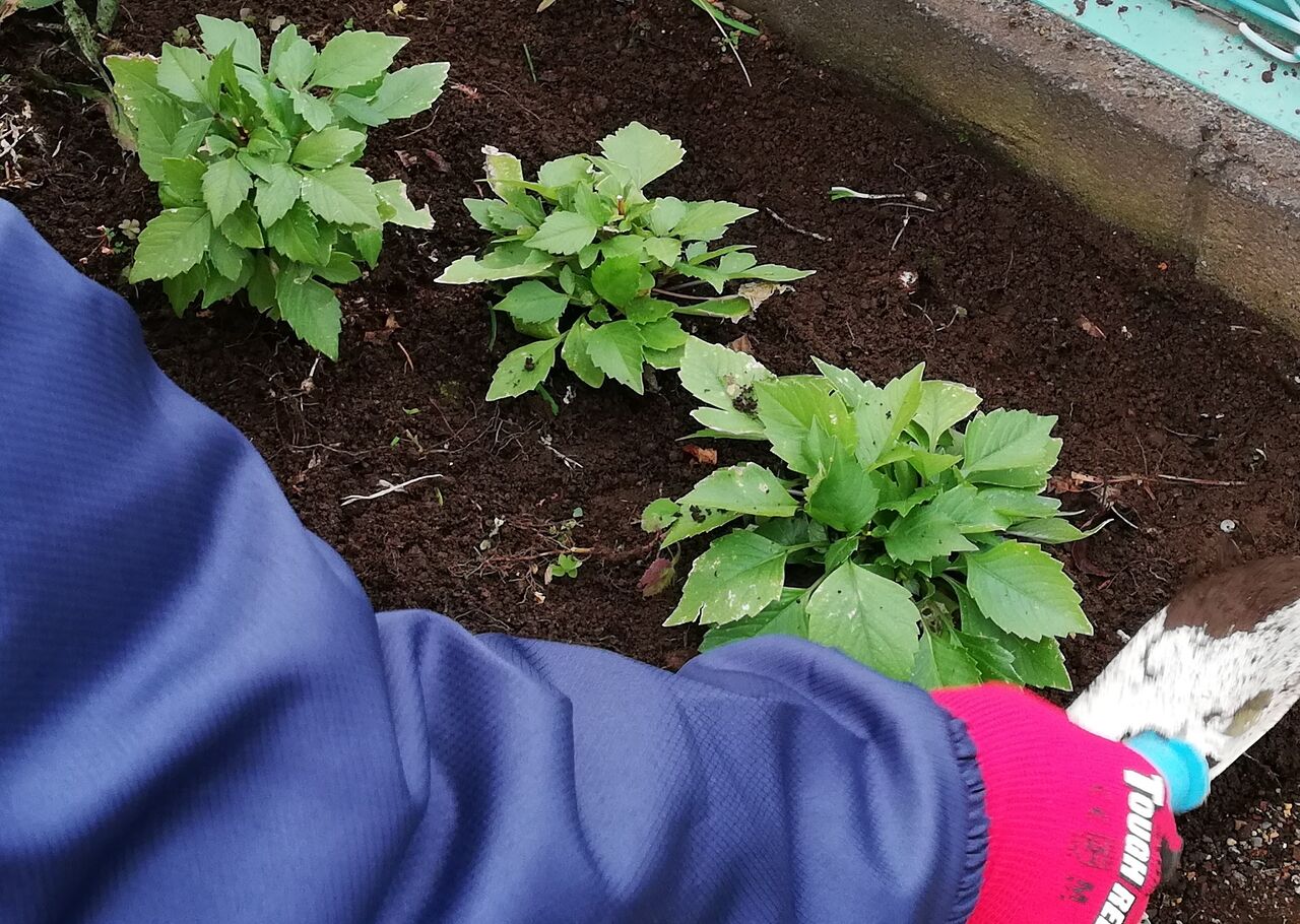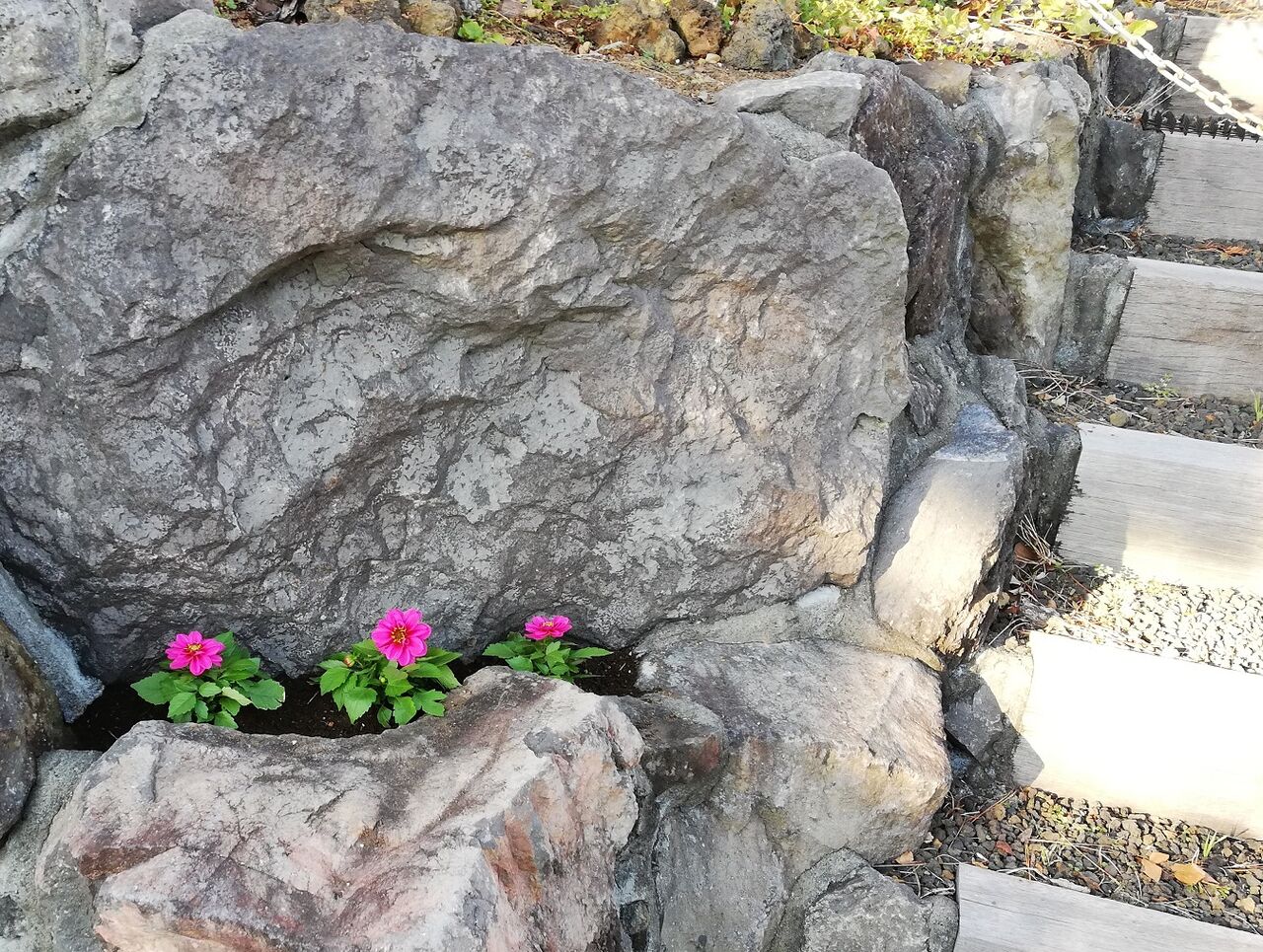 ダリアは花が終わりましたので、岩のポッドから場所を移しました。
