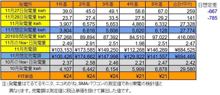 それでは、12/26~27の発電量です。(各発電所の仕様はこちらです)