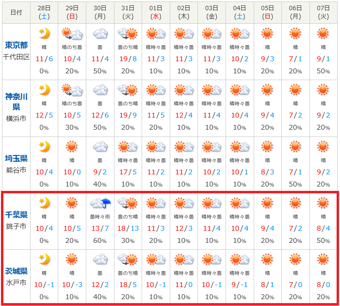 今月は好天が続きませんが、10日間天気予報を見ると傘マークが1つに減り、天候が安定してきたようです。(^^♪