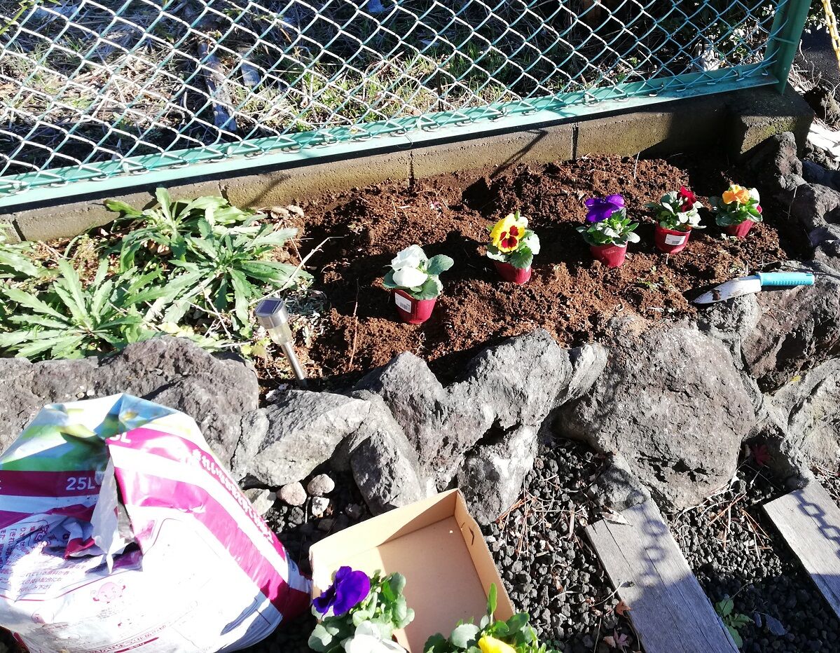 先月11/29に、好天につられてホームセンターでパンジーとダリアを購入して植えました。