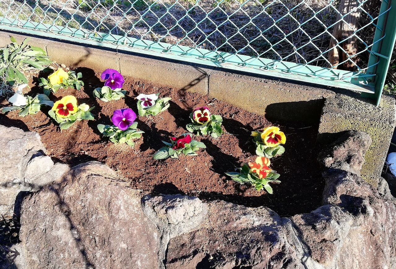 そこで、今度は長期間に渡って咲き続けるパンジーと同種のビオラを植えました。と言っても今回も植えたのは奥さんです。