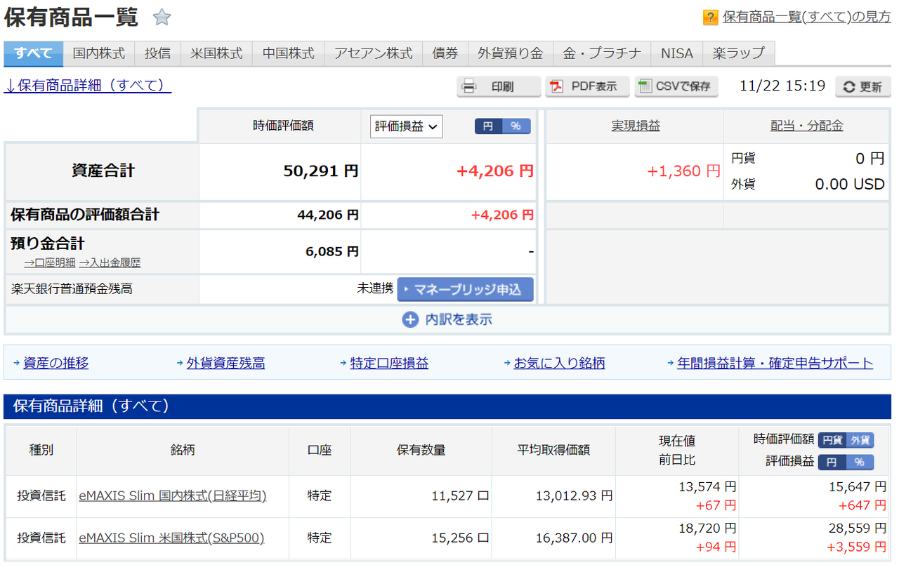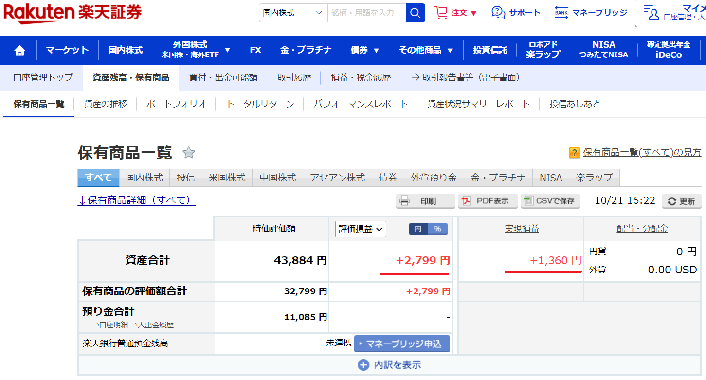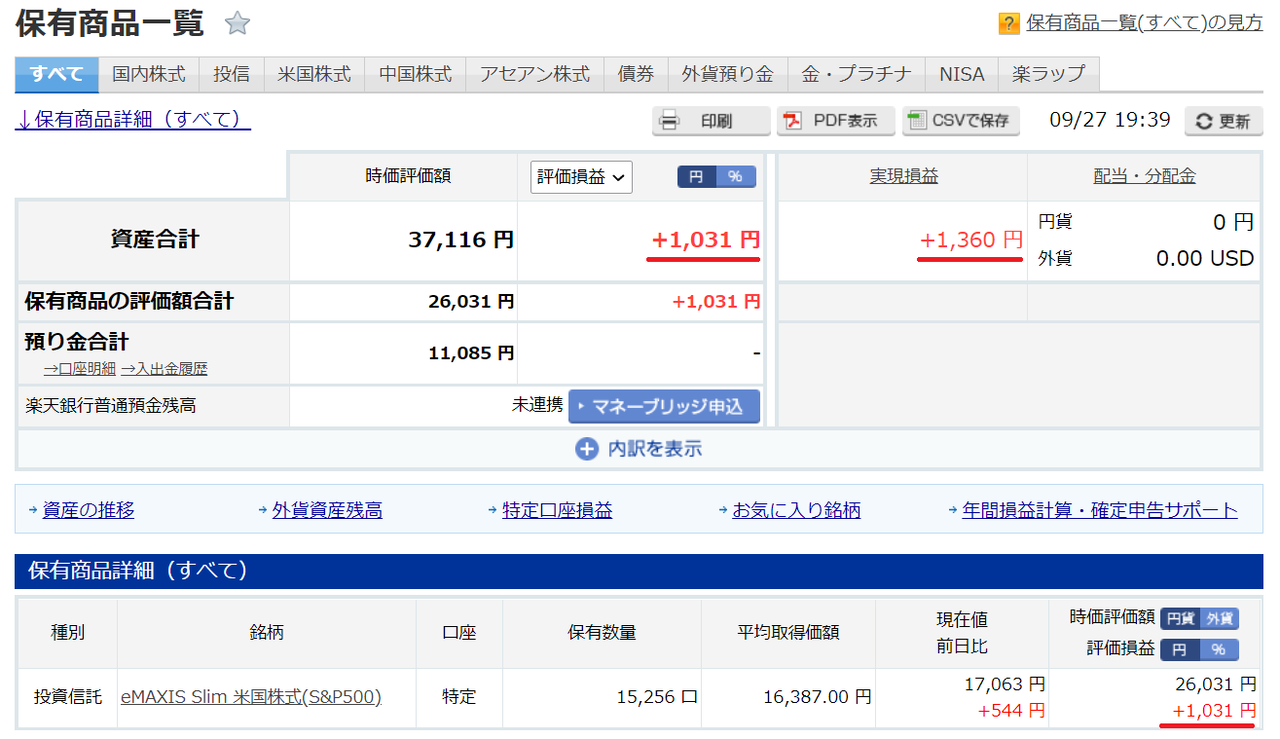 これまでのポイント投資額は52,000円(楽天ポイント)で、利益率(税引前)は8/25の+17% から+15.4%にダウンしました。