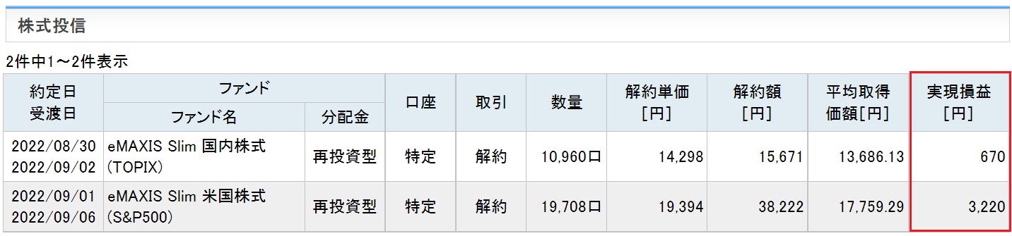 それでもTOPIX(投信)には、8/29に自律反発ねらいの買いを入れ、少し影響を緩和しました。