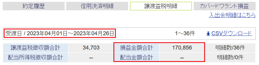 今月のMy確定損益です。
