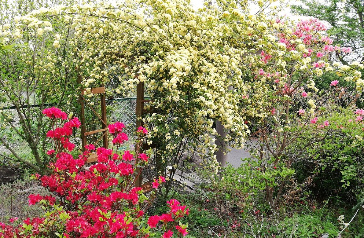 ここ伊豆高原も初夏のような陽気になり、庭のモッコウバラも満開です。