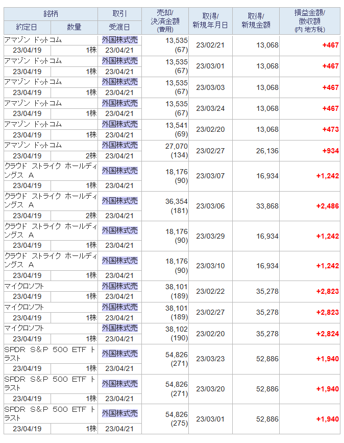 また、米株が下がりそうな気がしましたので、評価益のある米株を4/19に売却しました。
