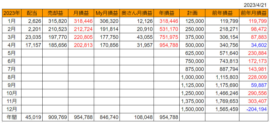 これで4月の合計損益(税引前)は +202,813円 になり、4ケ月連続で20万円を超過しました。(^^♪