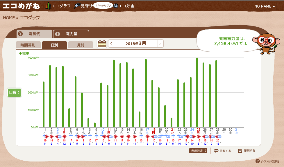 | 発電所 | 3/30 | 3月累計 | パネル出力 | 仰角 |