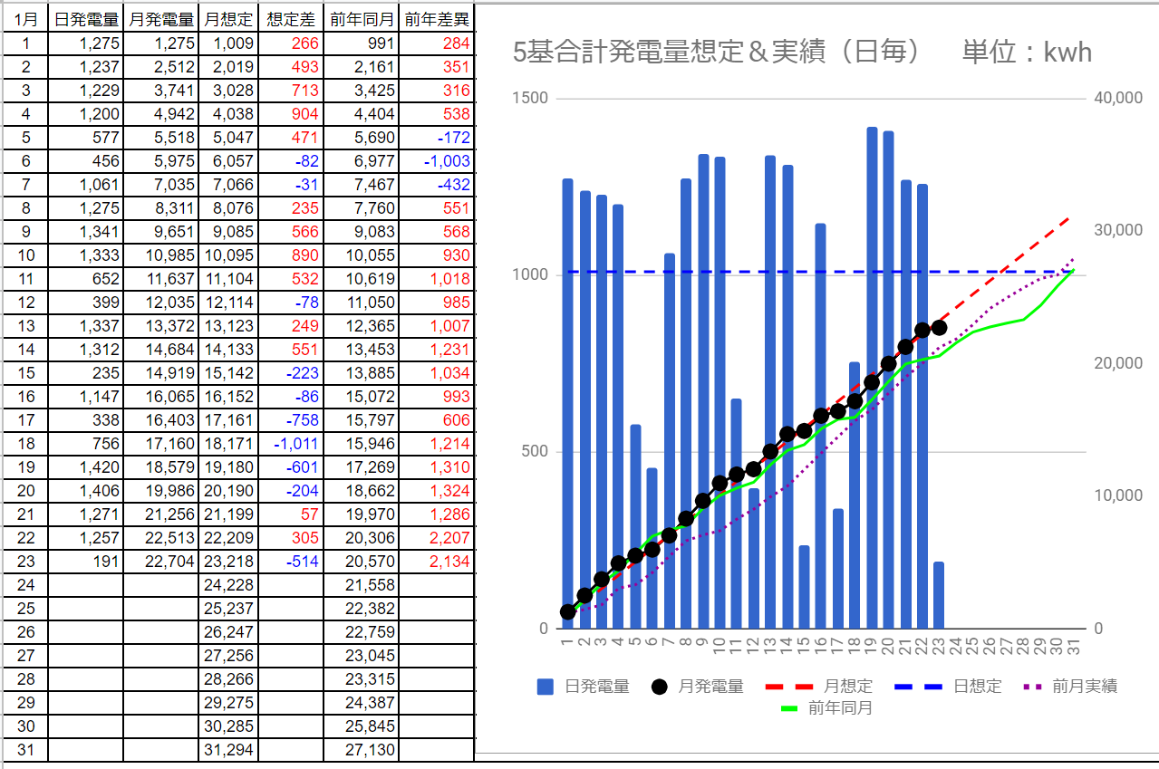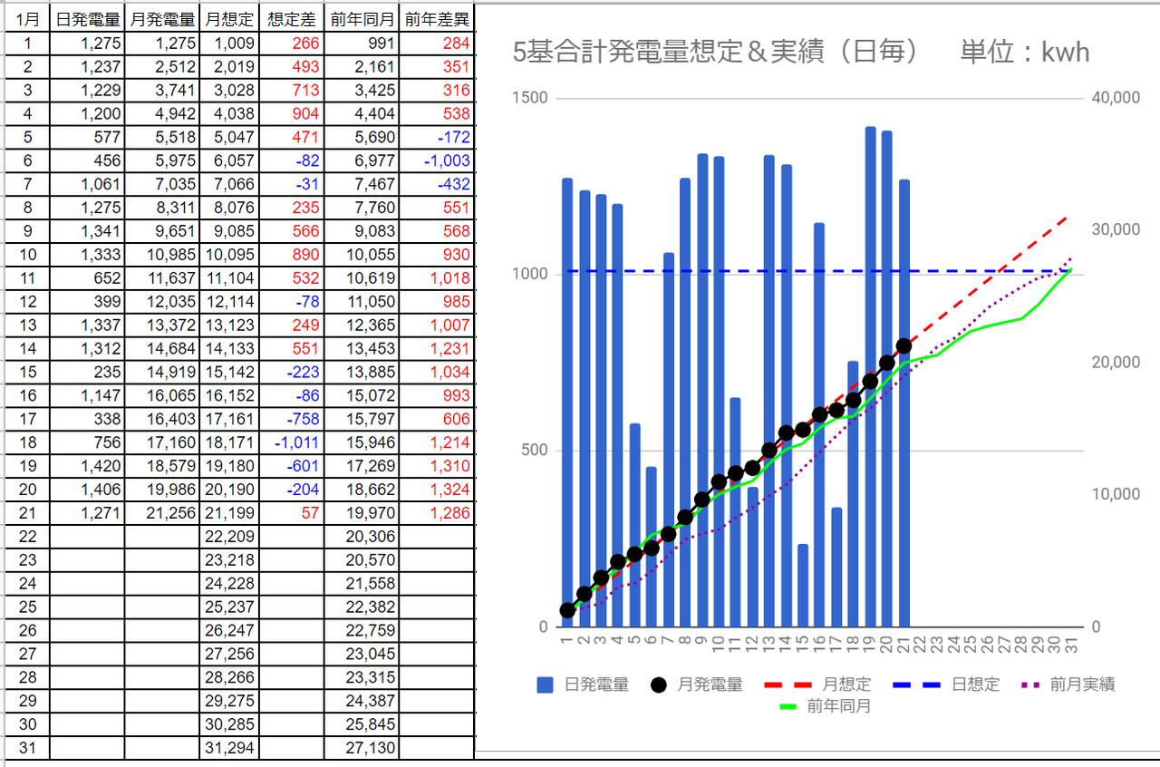 月発電量は26,766kWhで想定差は2/18の+2,772kWhから+3,848kWhに伸長しました。