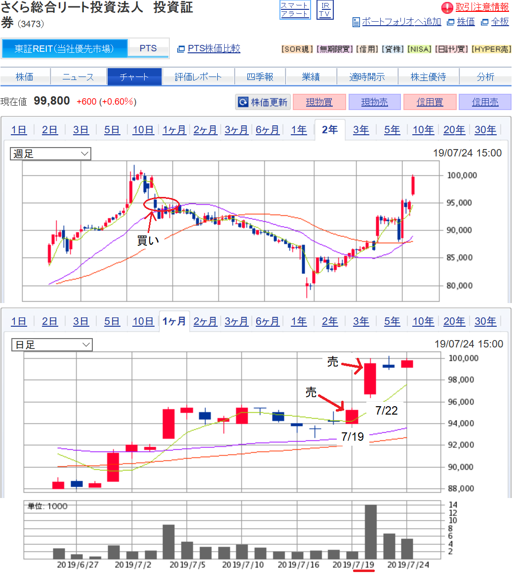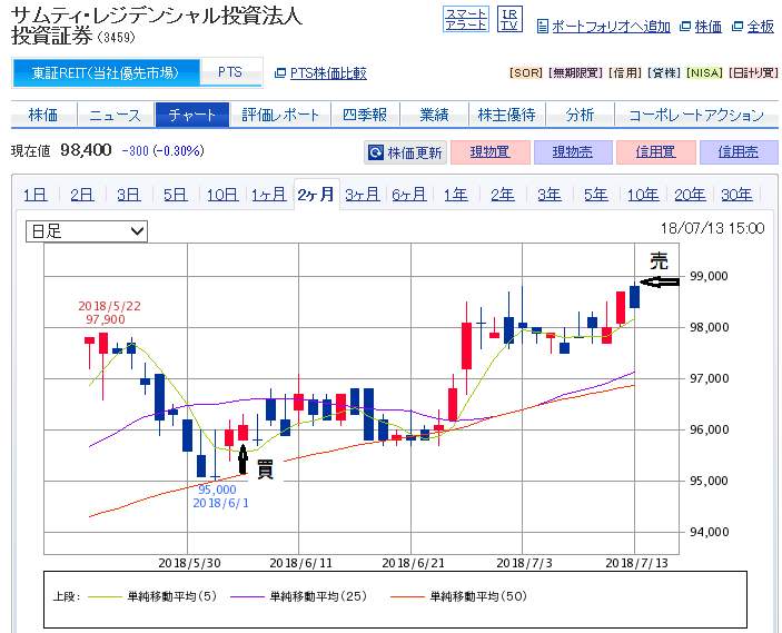 そういうこともあって取得価格程度には値が戻って来ていましたので先週金曜日7/19に売却しました。
