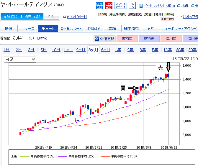 そして7/22月曜日に再度株価を確認すると更に株価があがっていましたので、奥さん保有株も売却してもらいました。自分のももう少し待つべきでした(^_^;)
