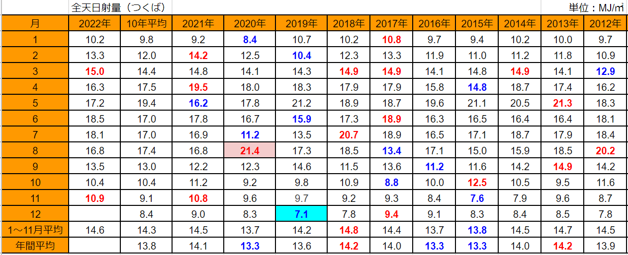 10.9MJ/㎡で11月としては過去10年ではベストです。