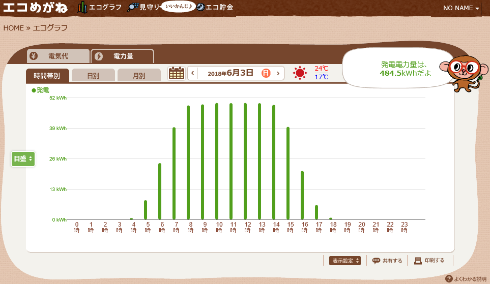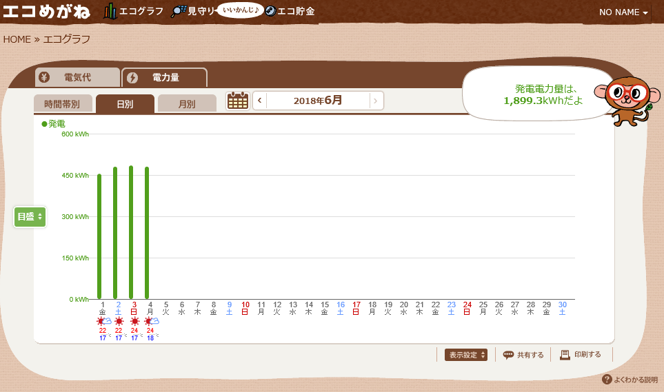 昨日6/4の発電量です。4号基は480.4kwhで4日連続で450kwhをオーバーしました。(^^♪