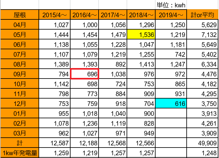 チェックしてみると、やはり過去最低の発電量です。(^_^;)