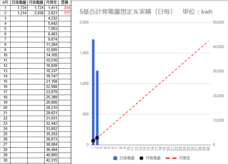 11/28時点よりも悪化、11/28の想定差+2,060kWhから+1,939kWhに減少しました。