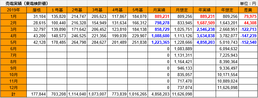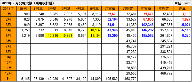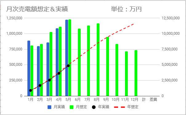 想定との年差異は-21,176kWh、2019年との差異も-14,587kWhになり、12月単月での挽回は不可能な状況ですが、少しでも盛り返して欲しいと思います。