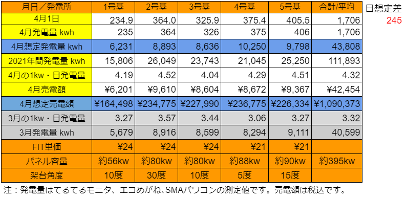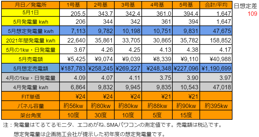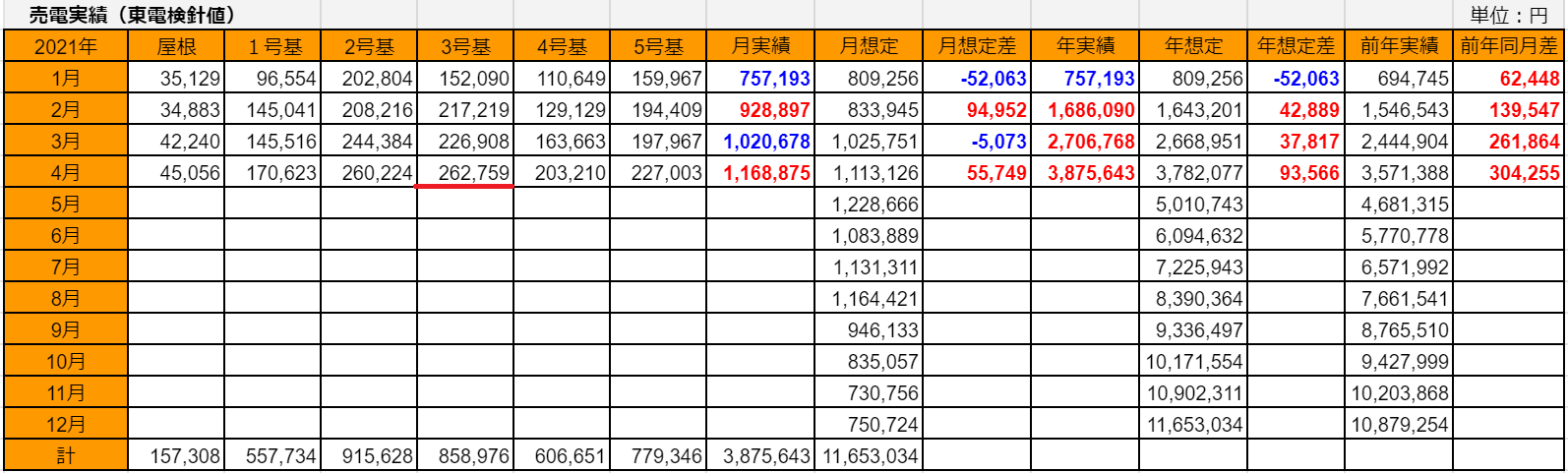 ちなみに、4月の売電額が最も多かったのは3号基でした。