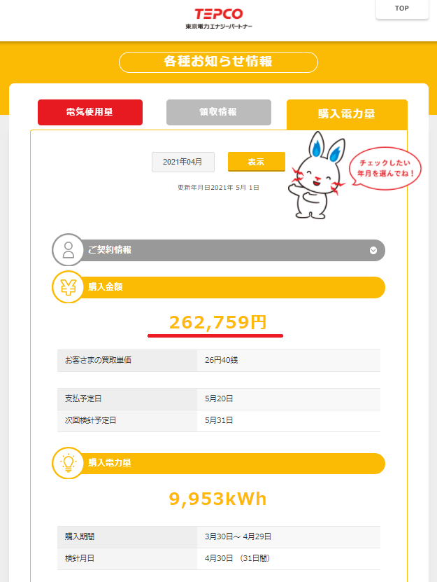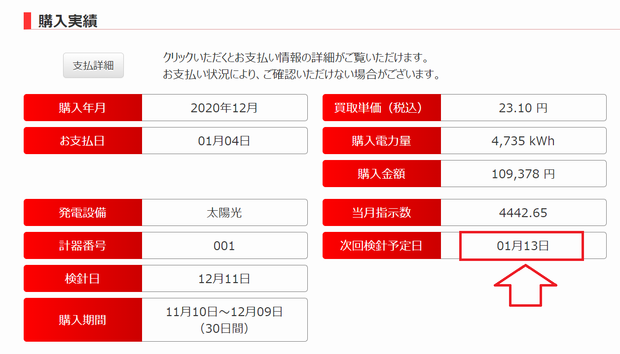 次は売電額をチェックします。