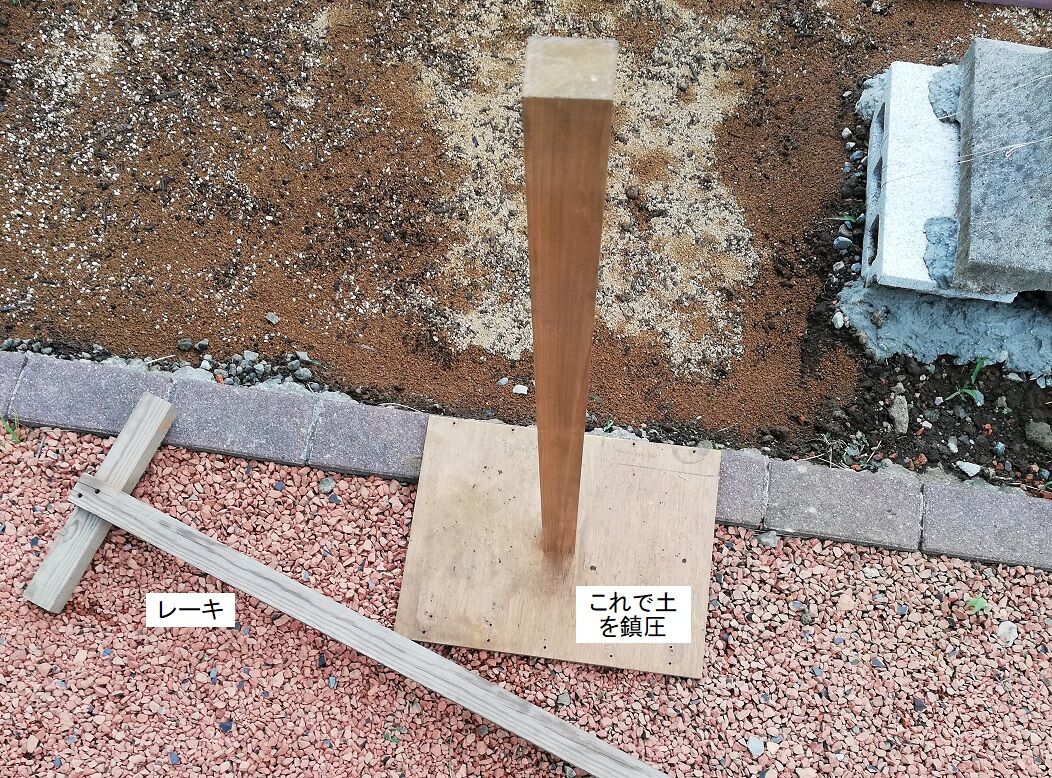 なお、レイアウトで上側(南東)のエリアは、後日、芝生の種を蒔くことにします。