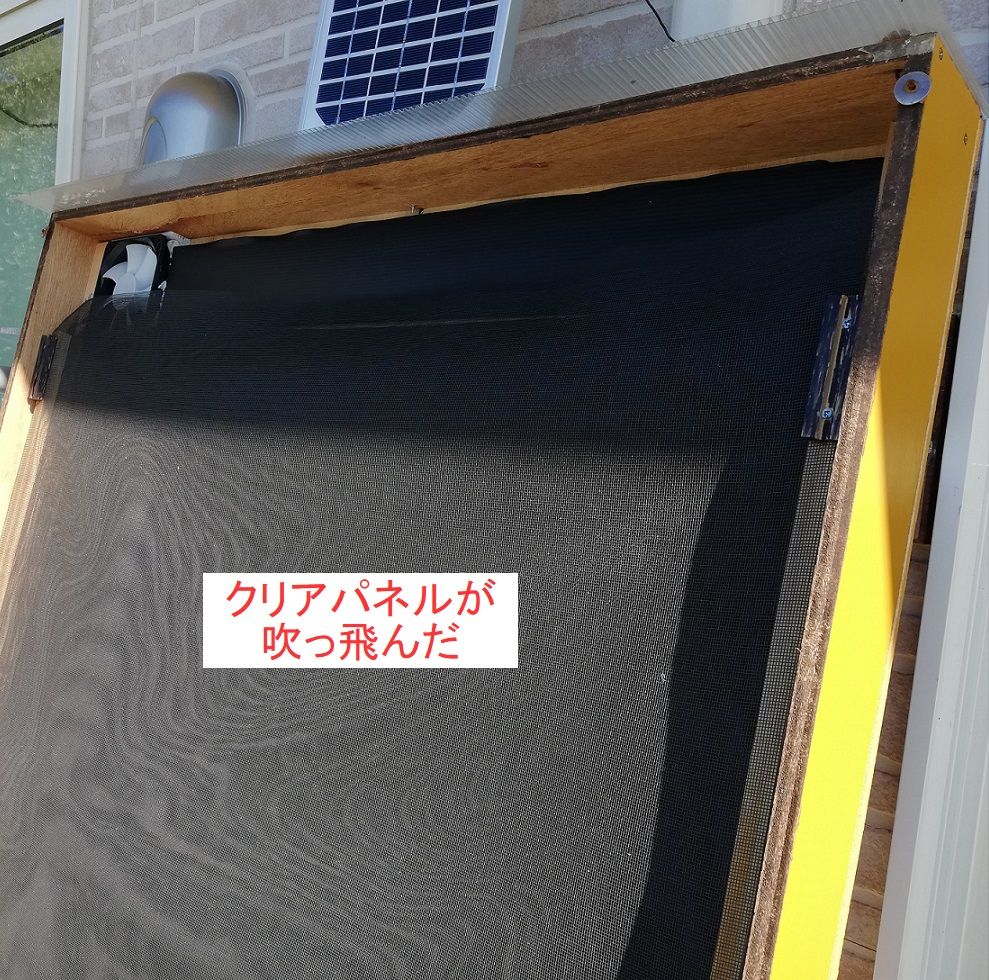 DIYで作成したソーラーウォール前面のクリアパネル(ポリエチレン)が吹っ飛んで無くなりました。
