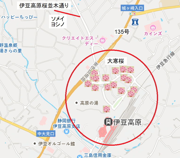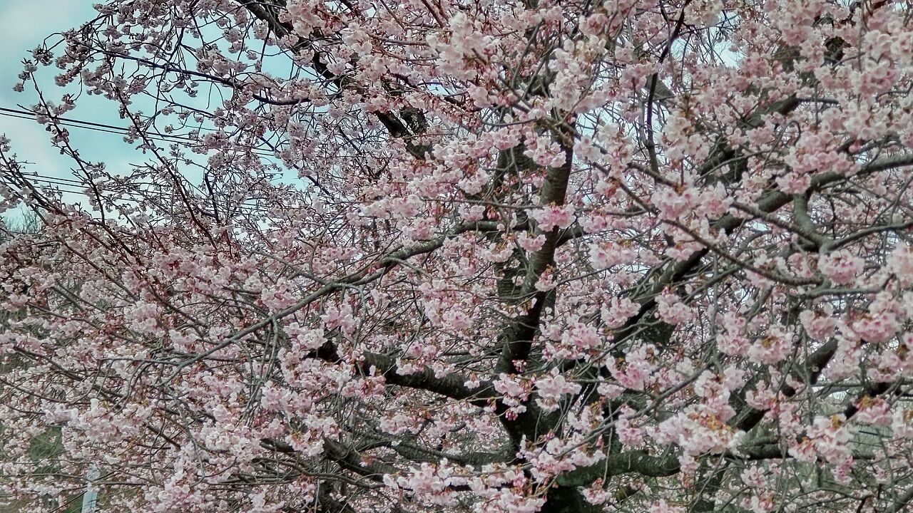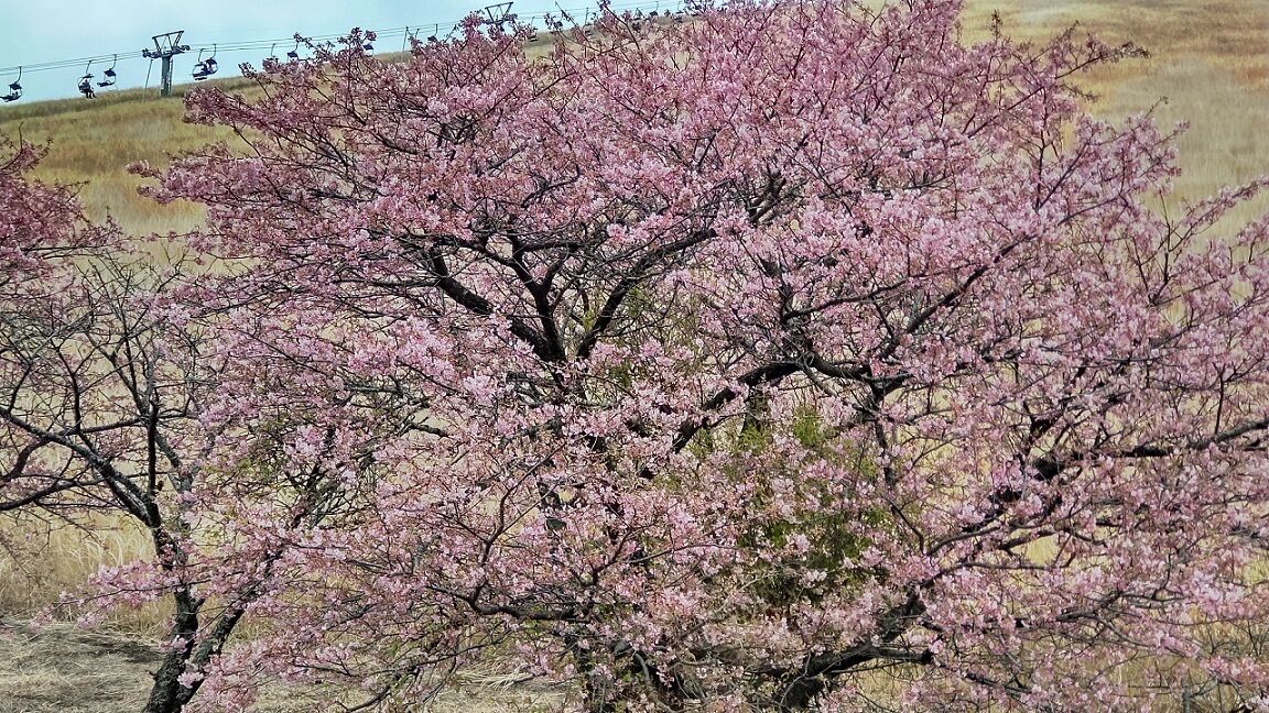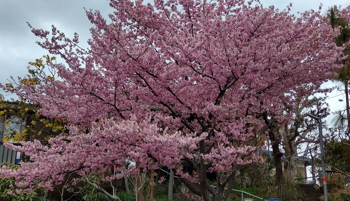 伊豆高原駅から国道135号線へ出るところに咲く 大寒桜 ↓です。