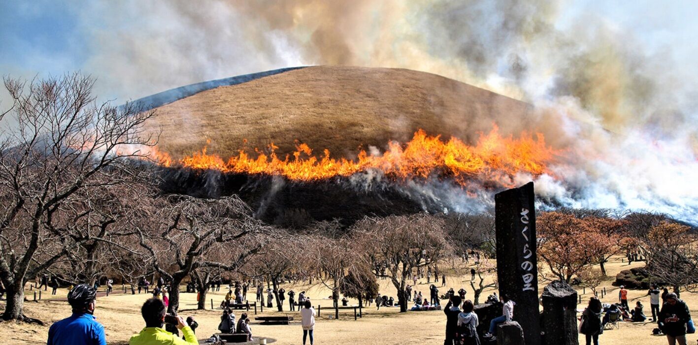強風や雨天により再再々延期(2/13→2/20→2/27→3/6→3/13)になり、大室山はまだ黒くなっていません。(写真↑は大室山オフィシャルサイトからお借りしました)