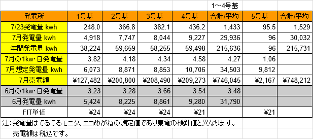 早速、Webを確認すると、な・なんと5号基の月発電量が1万kwhオーバーの10,137kwhを記録していました。5号基として初、5基全体で今季初です。