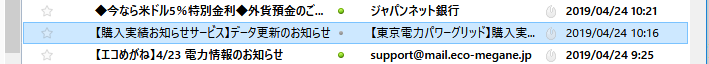 昨日4/24、電子メールにて東京電力パワーグリッド社から【購入実績お知らせサービス】データ更新のお知らせが届きました。![]()