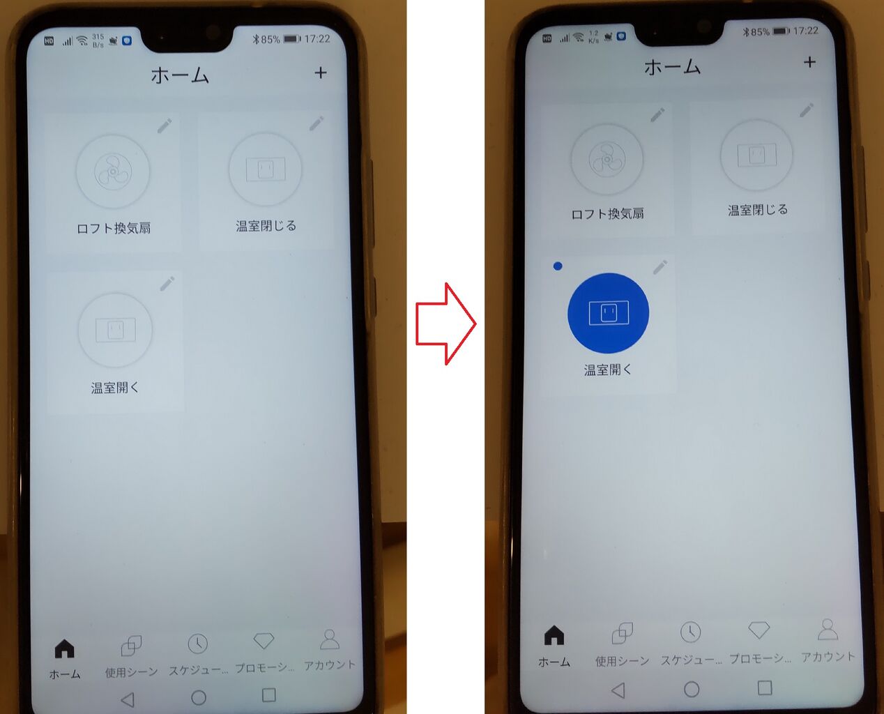 いままでもWiFiスマートコンセントを温室の開閉↓やロフト換気扇をオンオフするのに使い