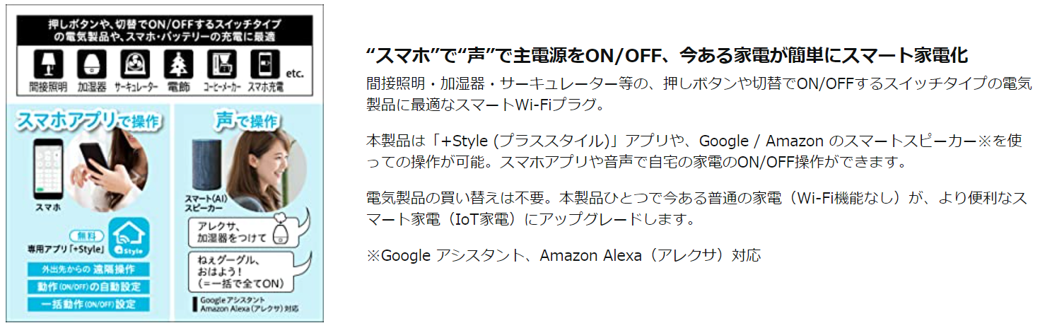 スマホや声(アレクサ連携など)でもオンオフでき、